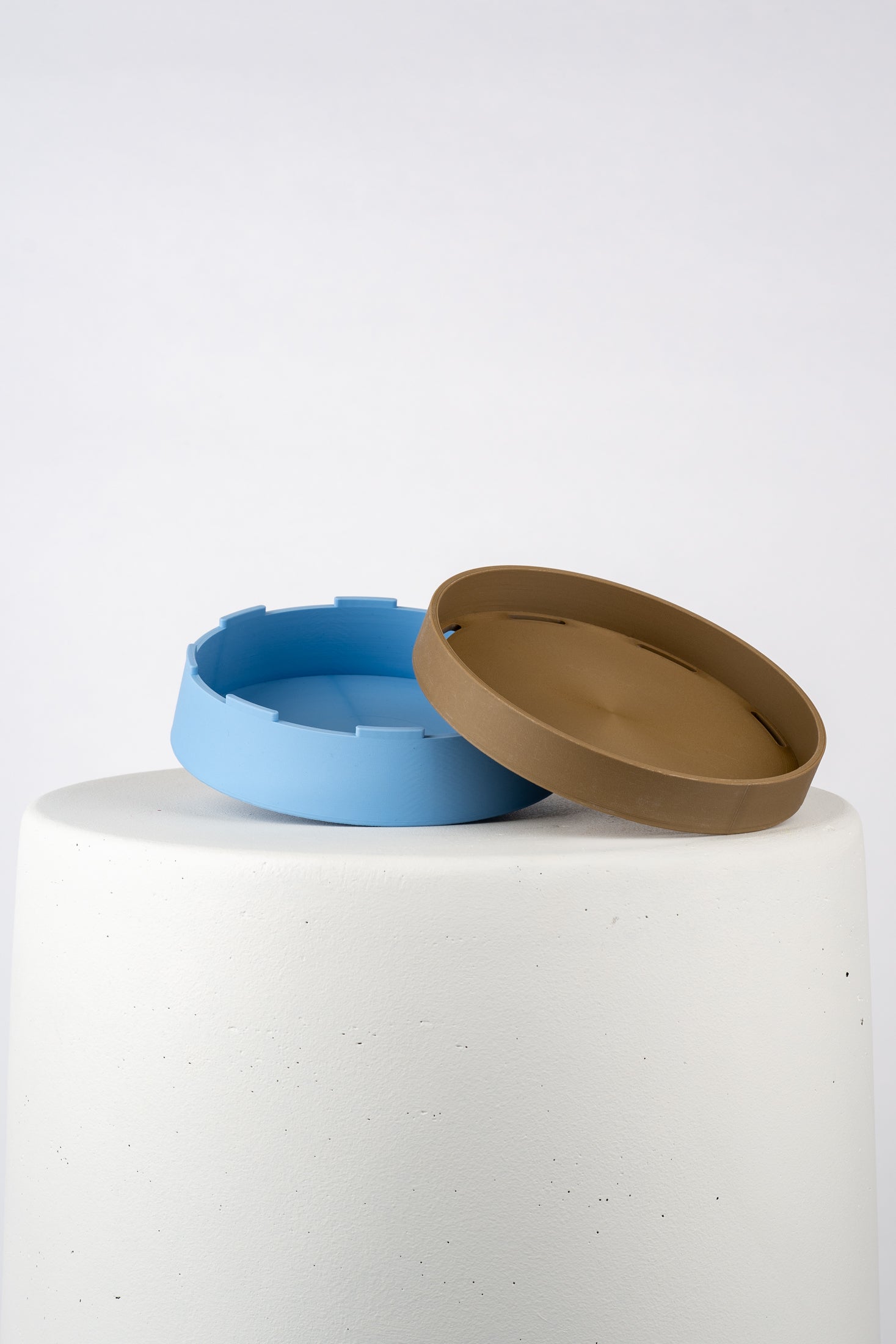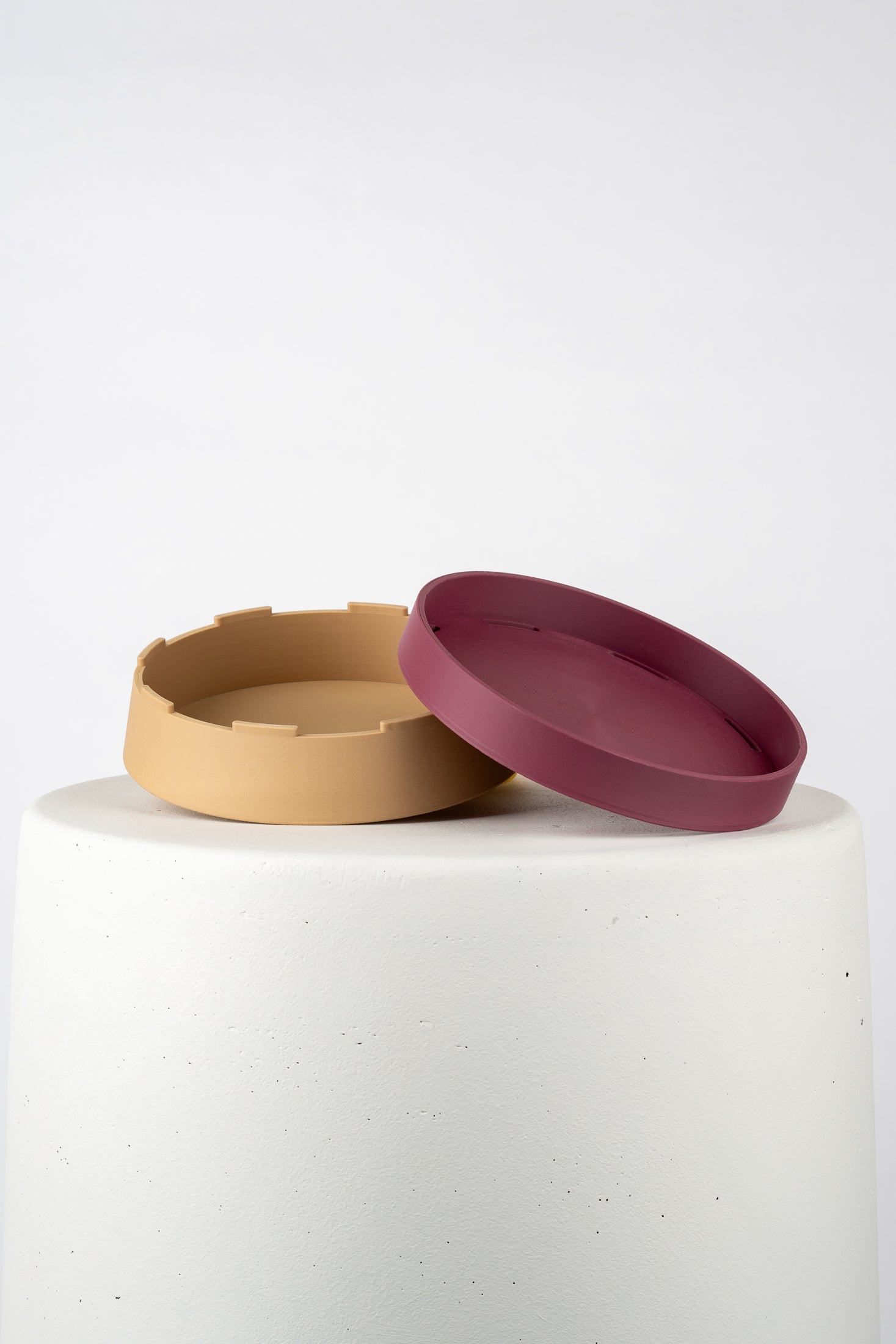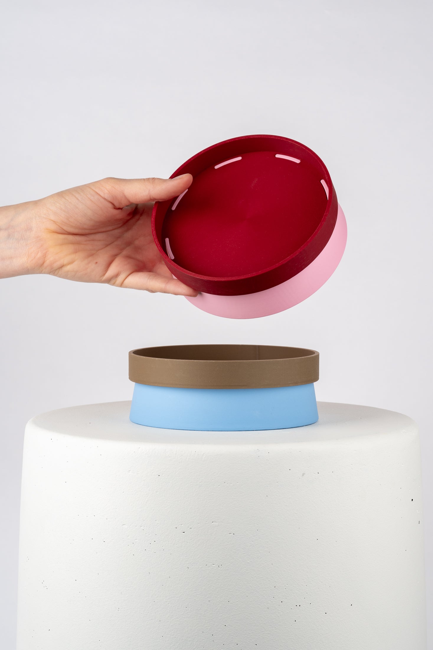 The box is 3d-printed, all color variations are made of PLA and fully recyclable.