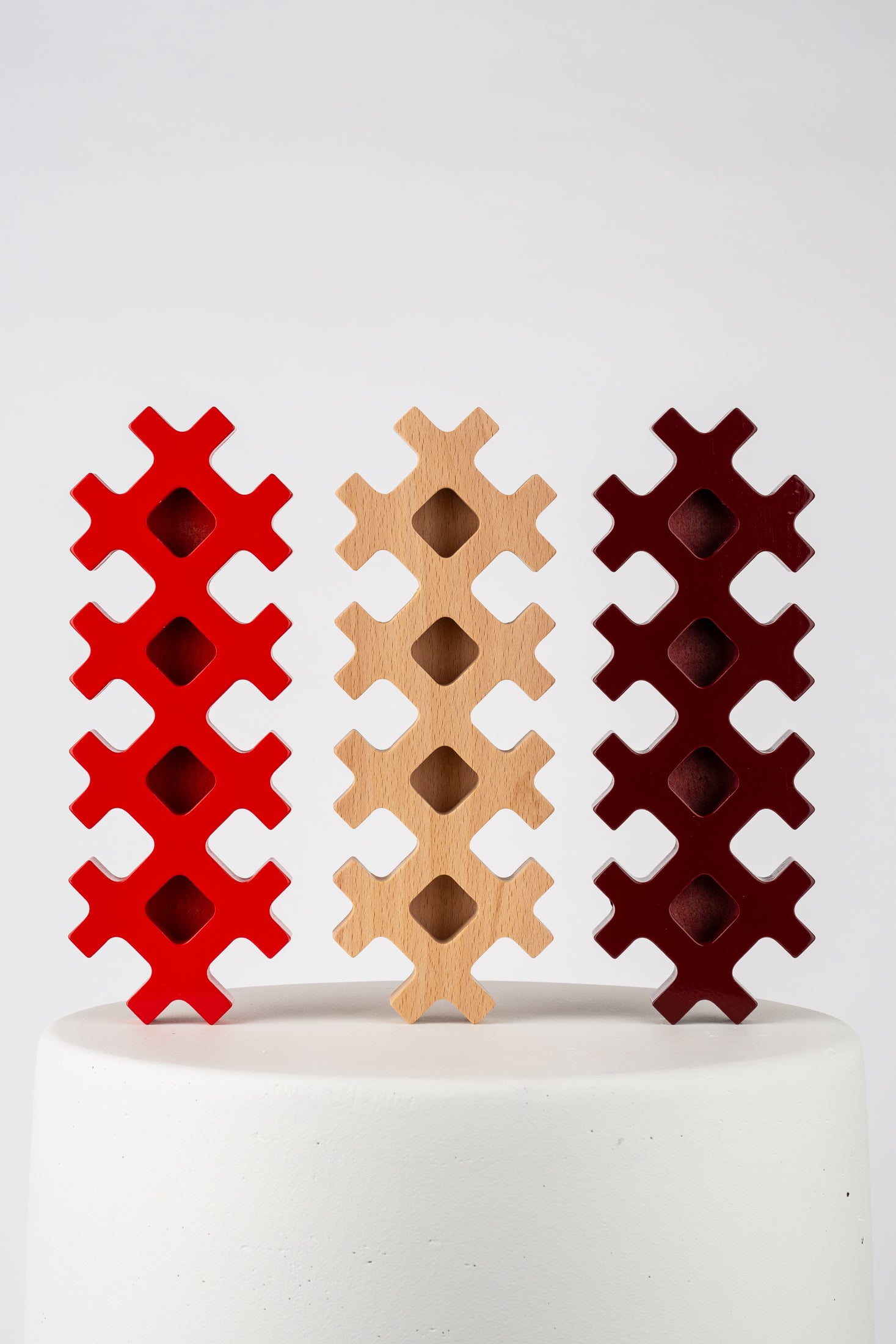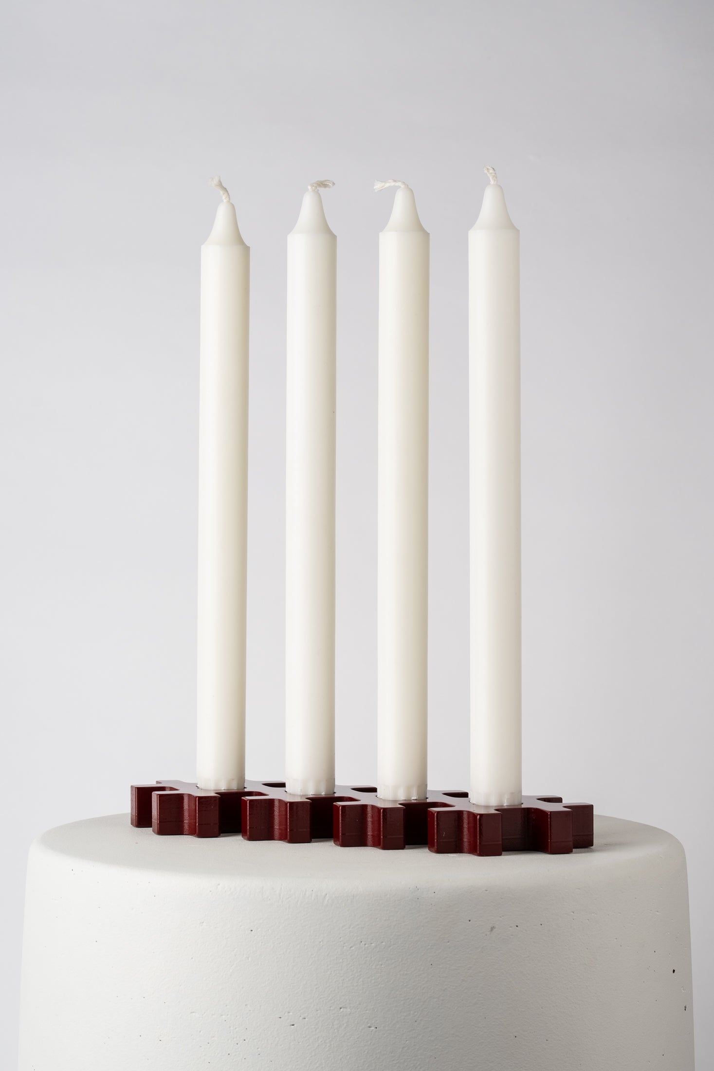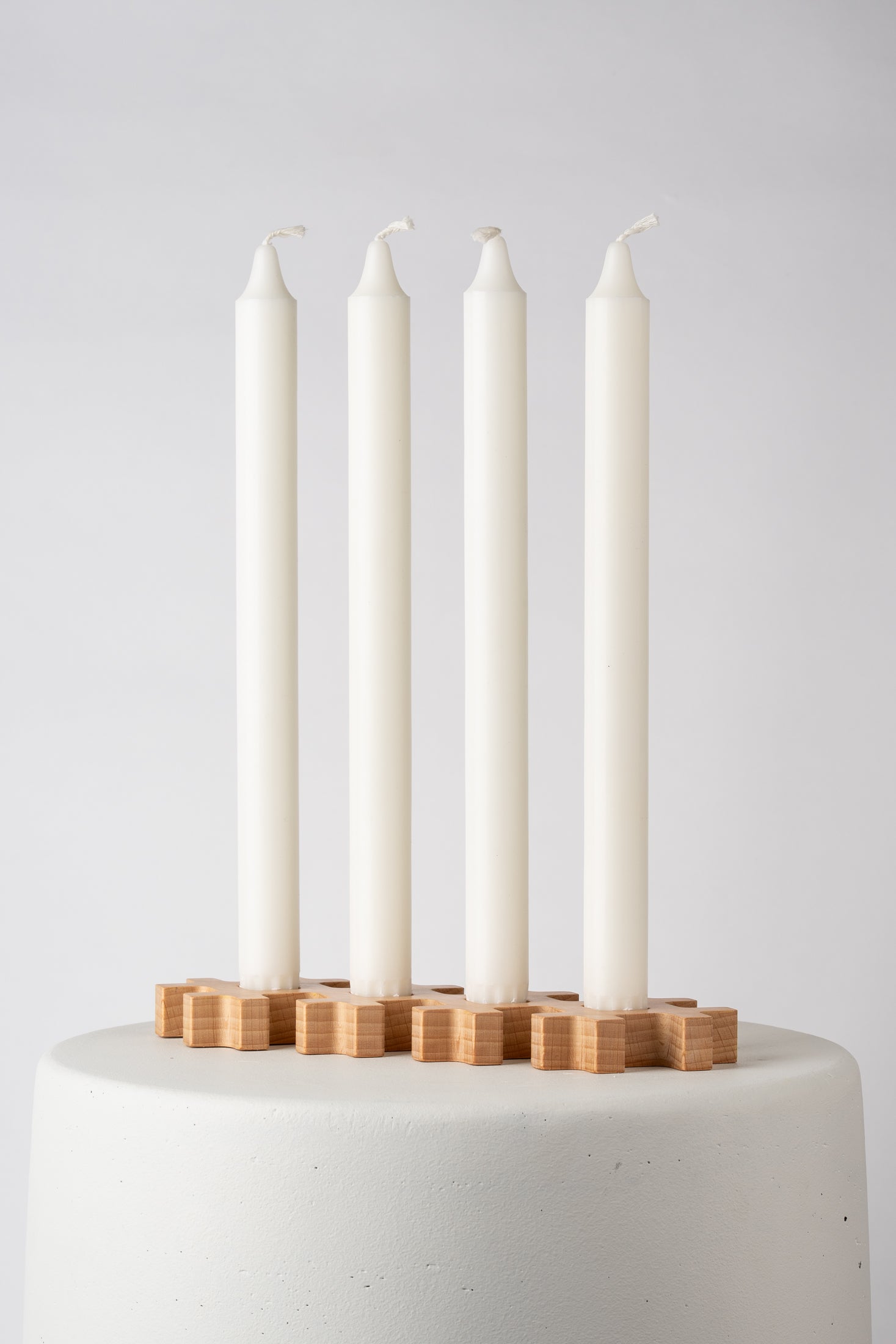 Rut is a classical candelabra made for four candles, created by Matilda Karlsson. The design is inspired by cross stitching and combines the classic craftsmanship with modern technology. The candelabra is made of beech wood and comes in three variations of color.