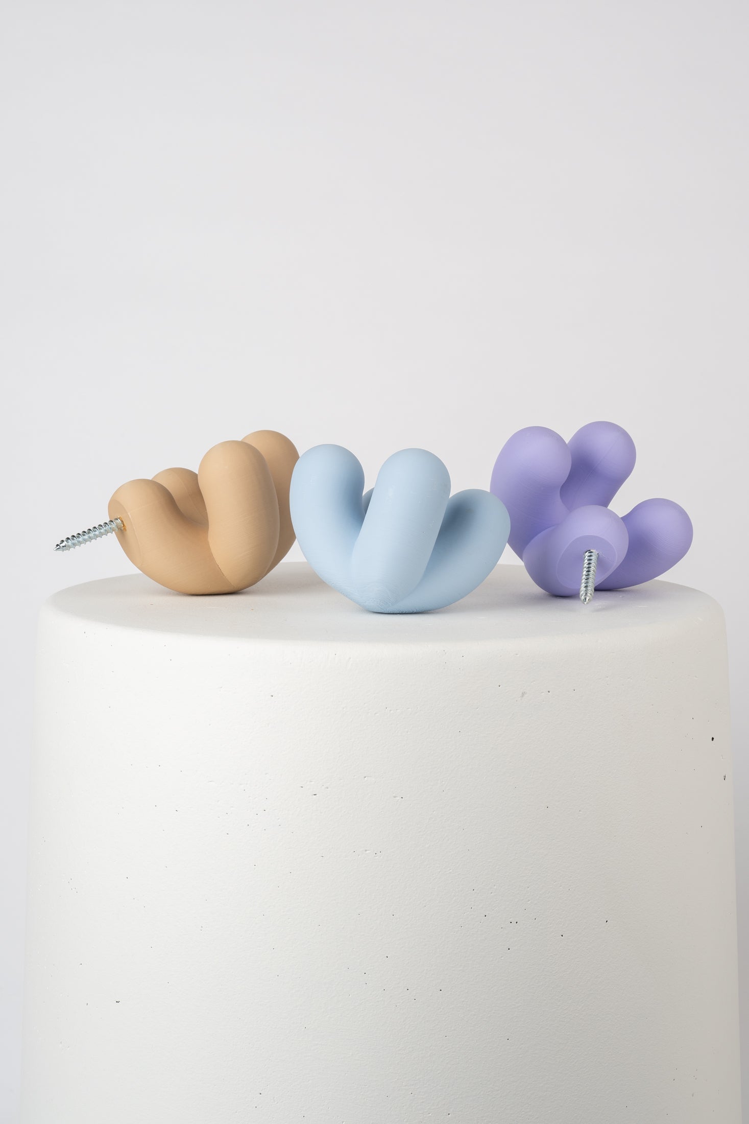 A versatile and modern hook designed for your hallway. Tulip is 3D-printed in durable PLA, combining functionality with a playful and chunky aesthetic.