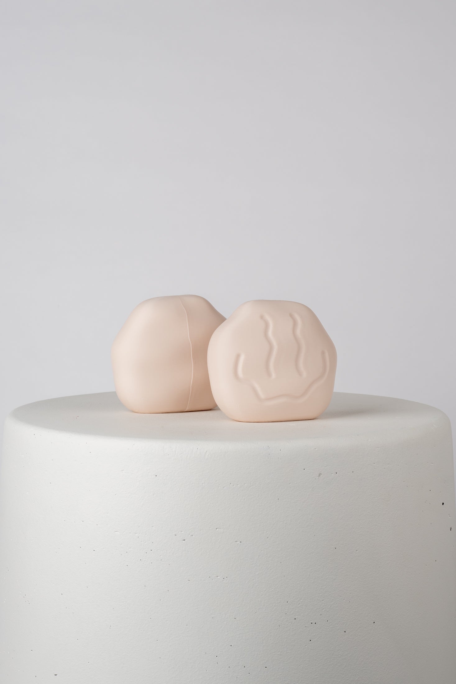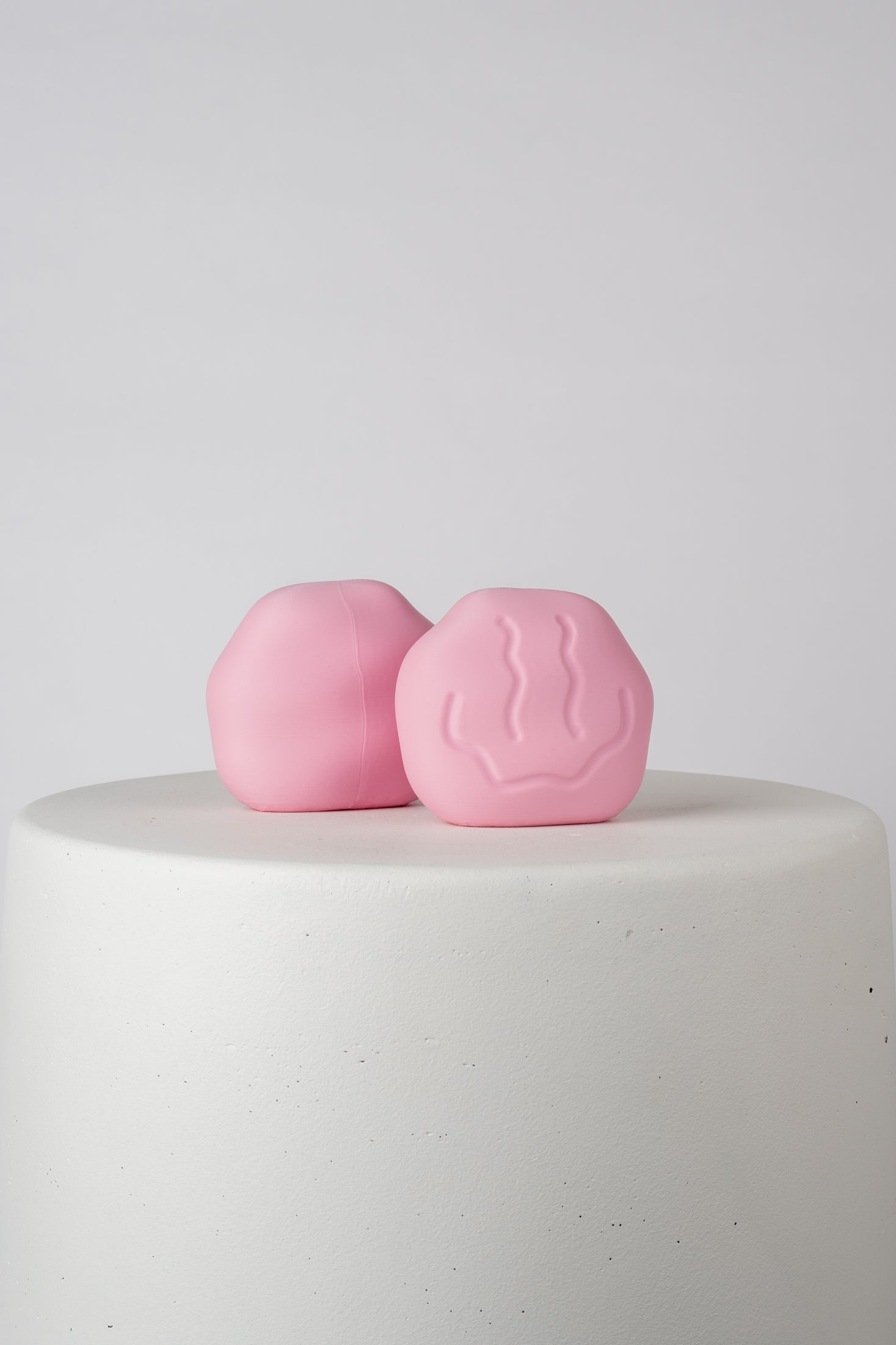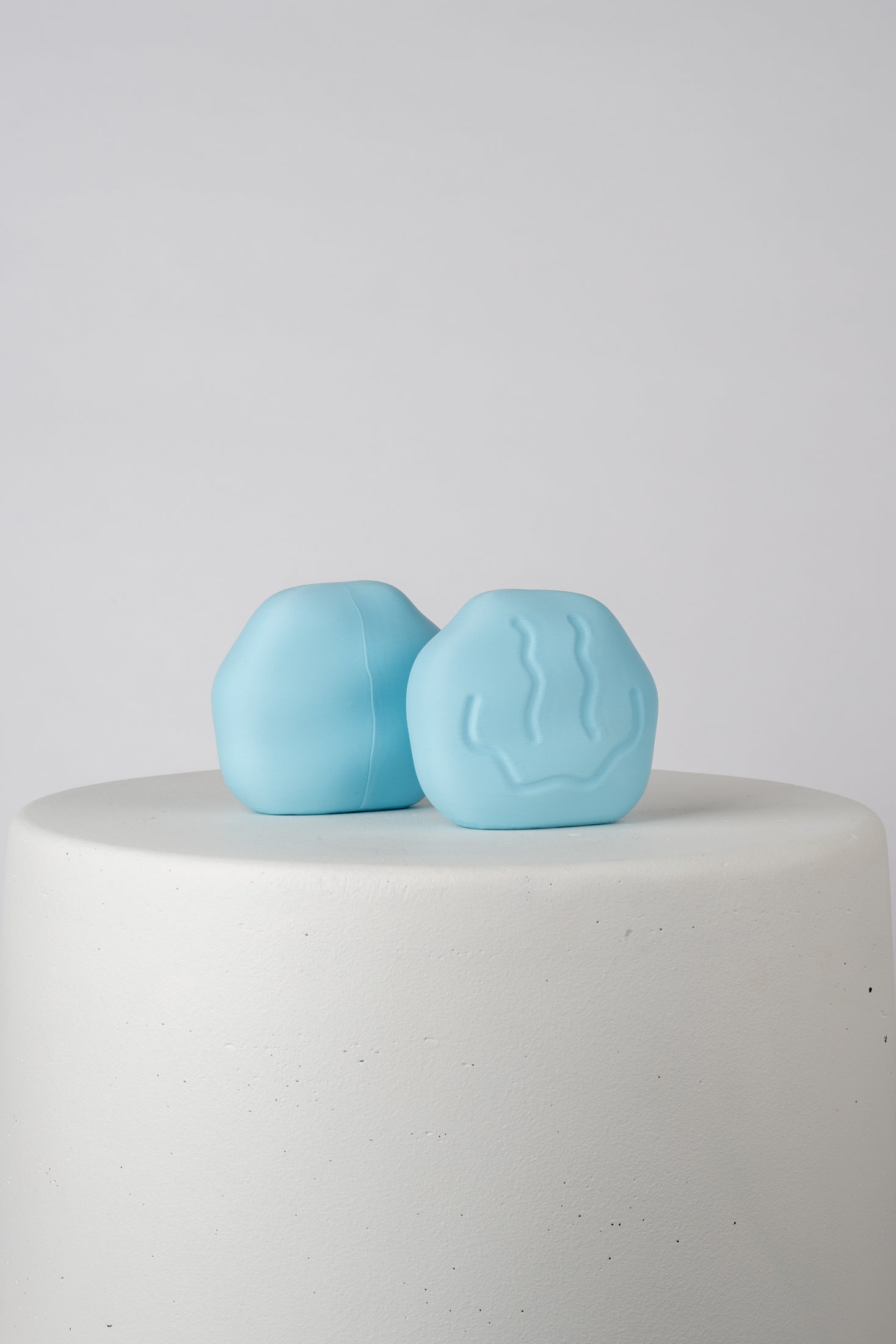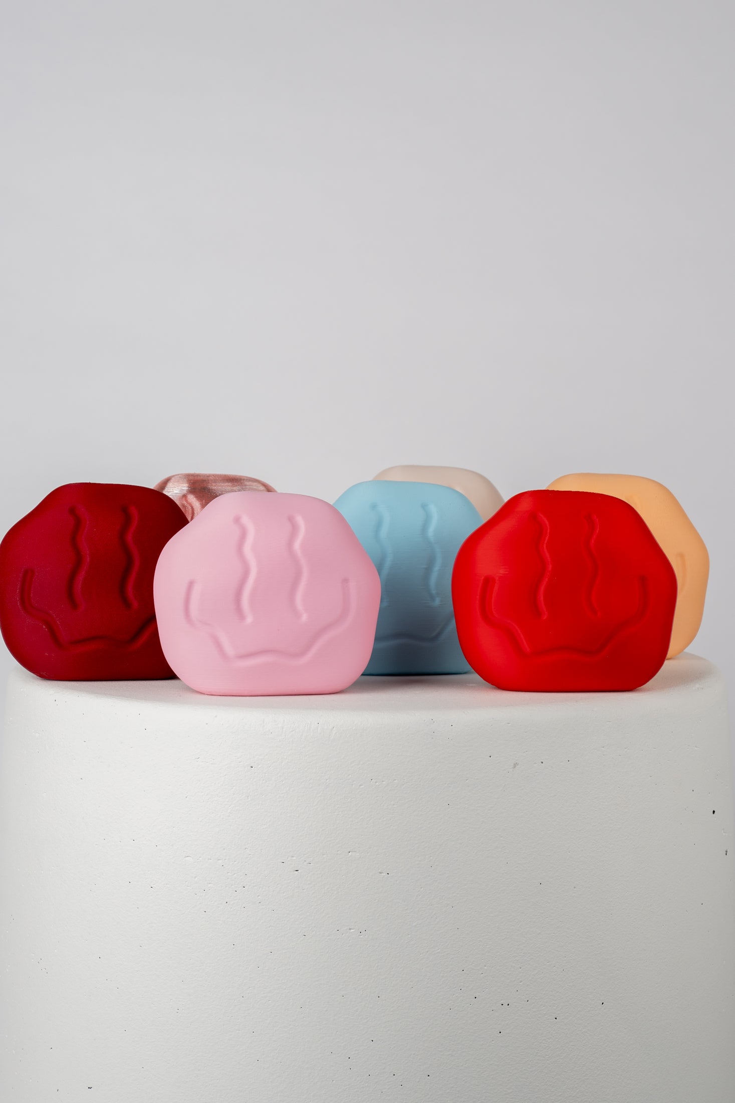 These are 3d-printed, all color variations are made of PLA, except for the pink shiny one which is made of PETG. They are fully recyclable, and SUPER CUTE. Hold one in your hand and you will instantly feel better.